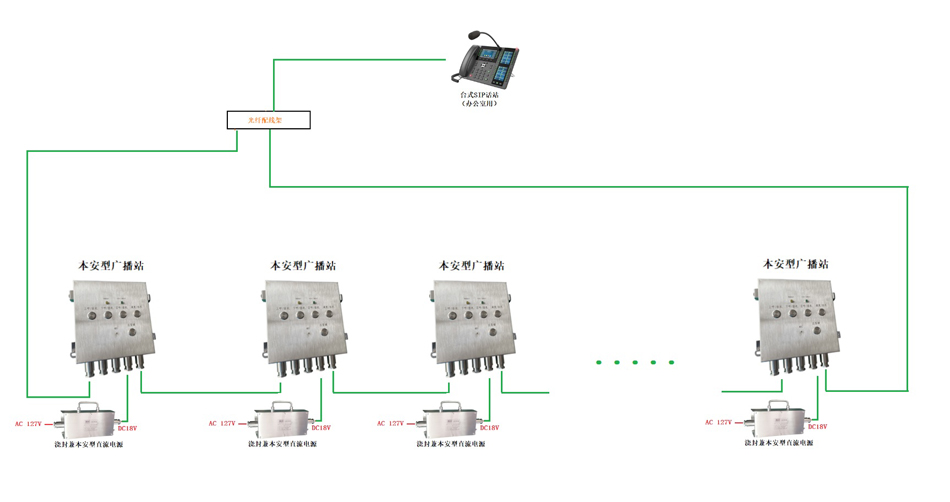 非煤礦山應急廣播,是安全生產必備的六大系統的重要內容;既能滿足礦山安全生產的要求,又能兼顧生產中調度與現場溝通協調的需求,常州安爾信智能設備有限公司的這套礦用應急廣播系統,從系統搭建,到設備功能,兼顧國家法規要求和實際生產需求,有很強的兼容性和聯動性,也有很強的可拓展性。1、這套系統,根據終端數量和功能要求,可選配合適的服務器和調度臺,或利用現有的電腦作為服務器,系統搭建容易;2、整個系統走網絡交換機,所有終端設備(礦用本安型音箱,礦用本安型擴播電話等)都自帶光電交換機,支持CAN傳輸;設備之間支持手拉手,用網線和光纖都可以,特殊要求的用雙絞線傳輸;3、所有設備支持網頁管理,調試、管理都很簡單;4、功能強大,可廣播,可電話,也可以一鍵速撥調度室、一鍵呼叫所在組的所有終端,一鍵發起緊急廣播等等,滿足多種廣播、對講、緊急廣播的需求;5、原廠生產,支持功能定制、協助出系統方案;6、安標證、礦安證齊全;配置清單:1、融合通信服務器(可以用電腦替代)  1個2、調度臺(多種款式選擇)   1個3、終端設備(礦用本安型音箱、礦用本安型擴播電話等)若干4、配套穩壓電源  若干